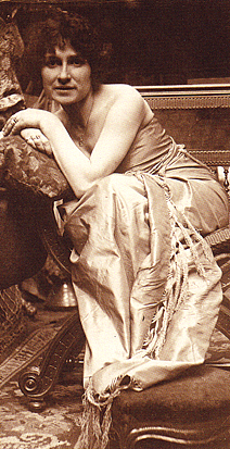 Dans l'atelier de Mucha en 1900, pose du modèle qui servit de support à la réalisation du panneau Emeraude (survoler l'image).